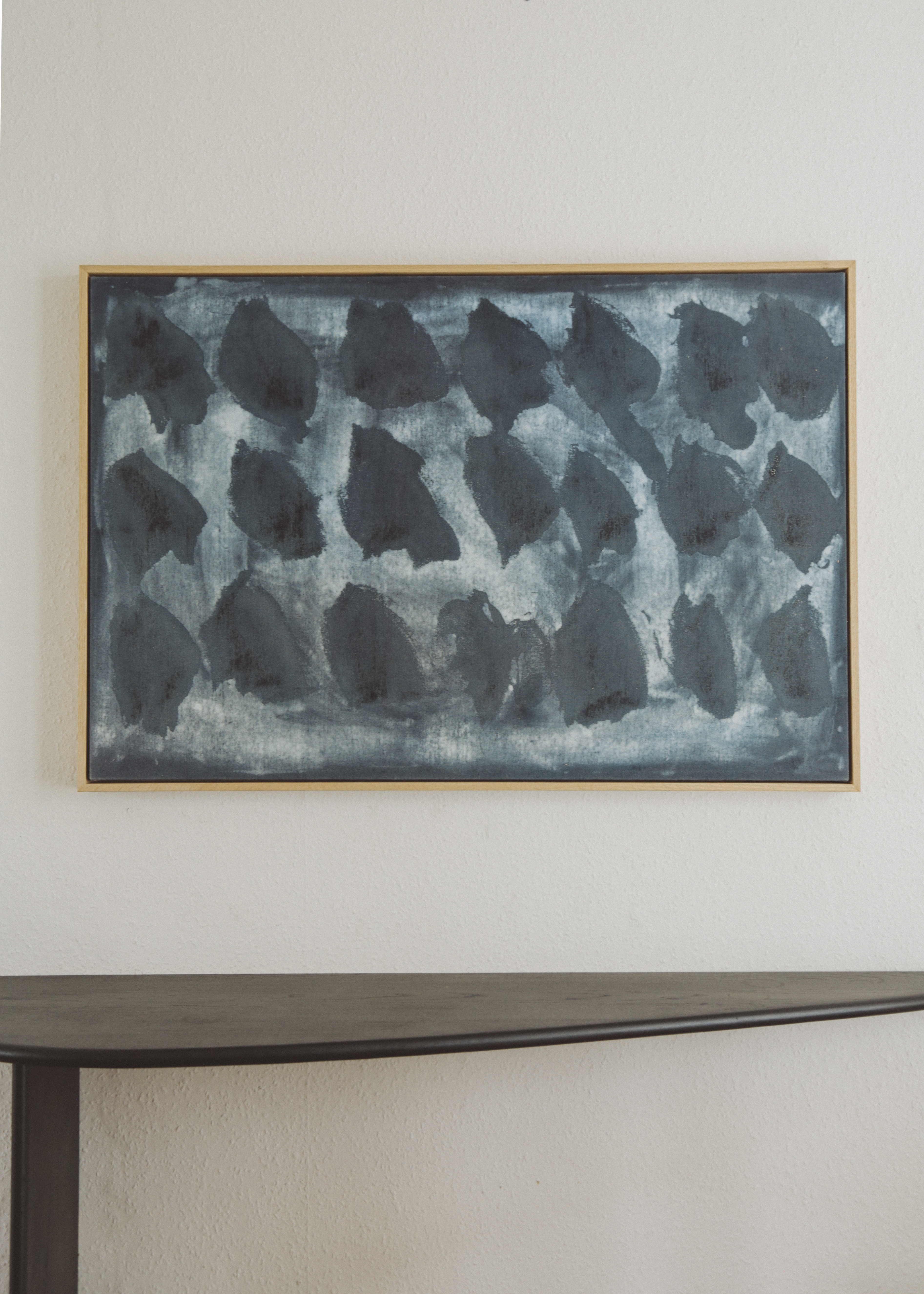 Inversion painting: acrylic and tempera through canvas, oak wood frame